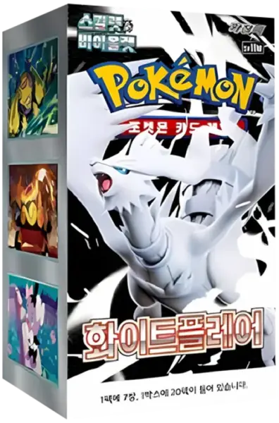 La Booster Box Pokémon White Flare SV11W en versión coreana incluye 20 sobres con 7 cartas cada uno. Un set exclusivo protagonizado por Reshiram, ideal para coleccionistas.